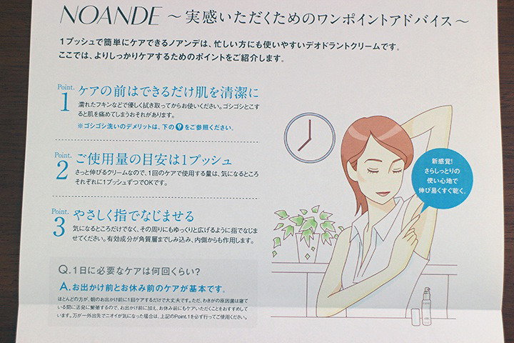 ワキガ菌が発生している状態だとノアンデが効きにくくなるので、ワキが清潔な状態で使うのがコツです。
