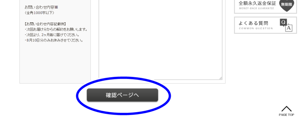 3すべての項目を入力し終えたら「確認ページへ」のボタンを押す。